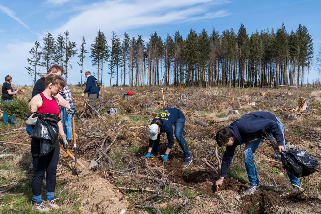 Im Rahmen einer Pflanzaktion haben wir im Stadtwald Wernigerode am Wellbornskopf im Wassereinzugsgebiet der Zillierbachtalsperre zusammen mit vielen weiteren Helfern über 6.000 Setzlinge gepflanzt. Der ursprüngliche Bestand hatte unter den Wetterextremen und dem Käferbefall der vergangenen Jahre gelitten. Weite Flächen sind abgestorben und sollen hin zu einem gesunden Mischwald mit Hainbuchen, Rotbuchen und Douglasien wieder aufgeforstet werden.